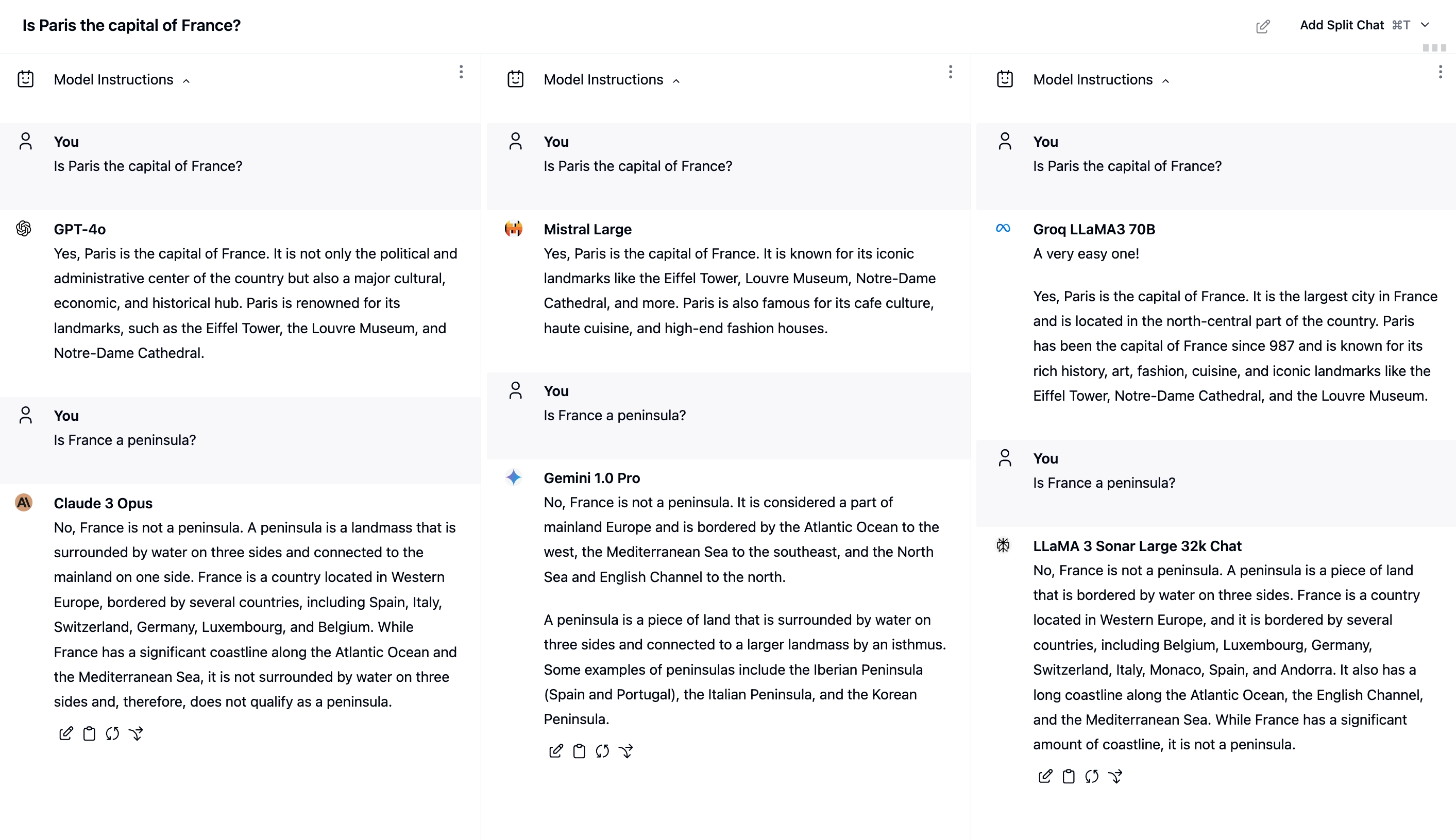 Revolutionize your research with split chats. Compare and contrast multiple AI models' responses in real-time, streamlining your workflow and uncovering new insights.